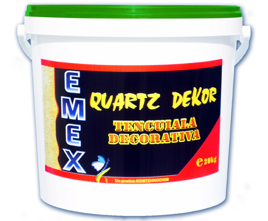 Tencuiala Decorativa “EMEX QUARTZ DEKOR” este un produs profesional pe baza de copolimeri acrilo-stirenici, aditivi si granule de marmura intre 1 si 3 mm, destinat finisarii tencuielilor interioare sau exterioare, cu aspect final striat, mat.