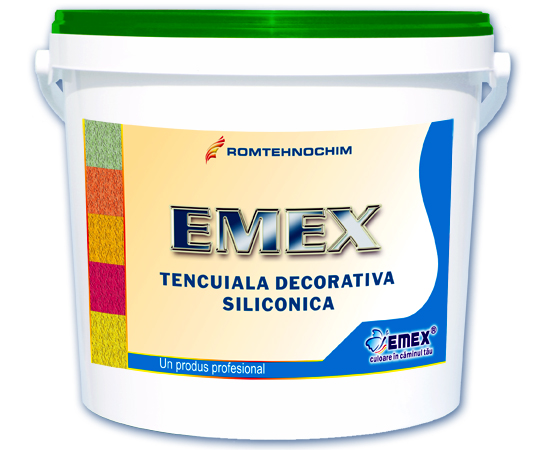 Tencuiala Decorativa Siliconica “EMEX” este un produs mineral, profesional, cu adaos de aditivi siliconici si granule de marmura de 1 ÷ 3 mm, cu mare elasicitate si flexibilitate, foarte rezistenta la intemperii si ultraviolete, cu aspect striat, mat.
